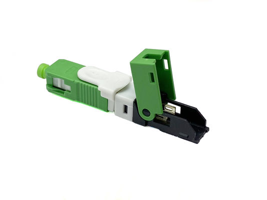 کانکتور سریع SC/APC، رنگ سبز، کلپ سفید برای باز کردن و بستن مجدد کانکتور، بوت مربع می تواند بالا و پایین چرخیده شود.